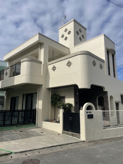 地域がらなのか建物にカビが多く、カビ除去から仕上げ塗料も防カビ、坊藻の塗料で仕上げました。喜舎場様からは